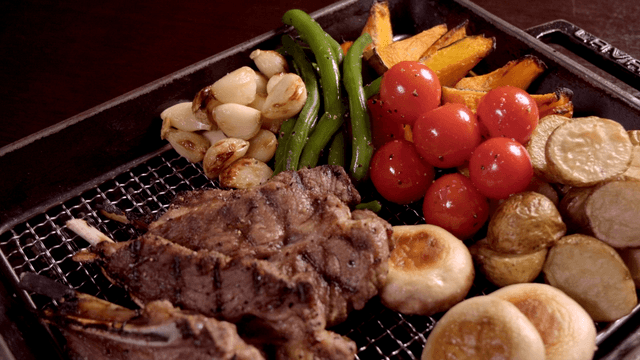 Meat and Vegetables Grilled on a Korean Barbecue Grill