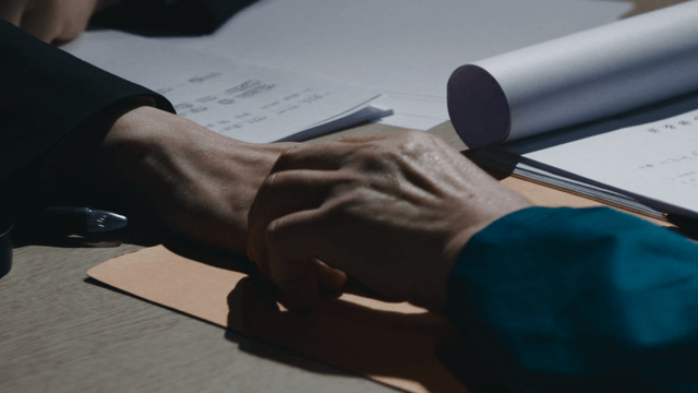 Hands discussing documents on a table