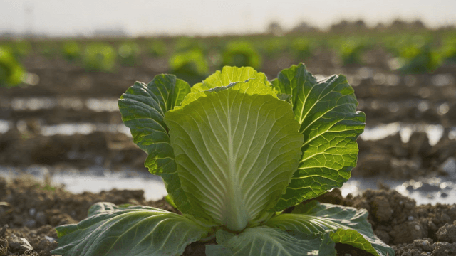Cabbage field growing in sunlight