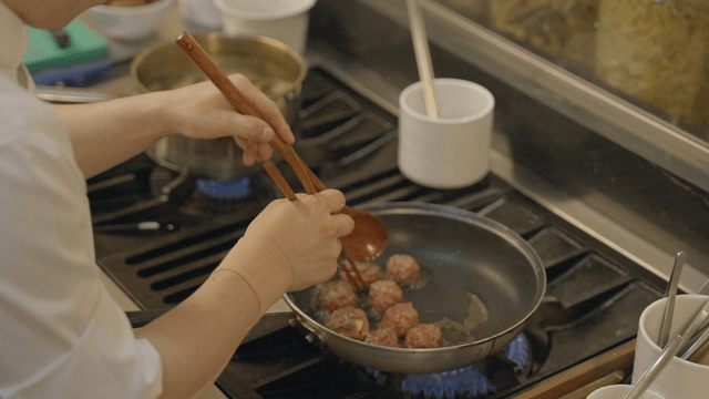 Pouring the Chunjang Sauce into the Pan on the Gas Stove