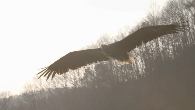 White-tailed eagle flying above forest