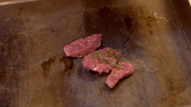 Steak grilled on hot iron plate