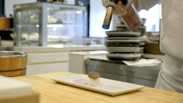 Chef preparing sushi with precision
