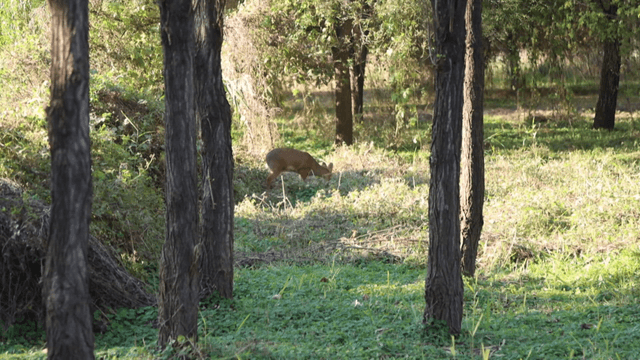 Vibrant forest in the daylight with sunlight filtering through the trees