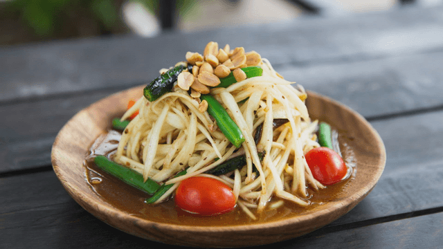 Vibrant Som Tum salad made with fresh ingredients