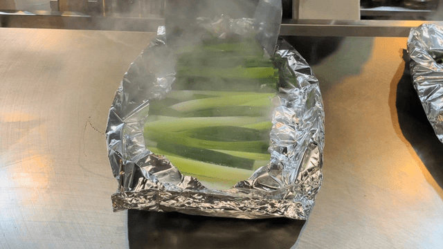 Boiling scallion inside foil