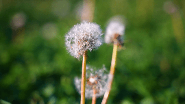 Dandelion seeds swaying in the wind