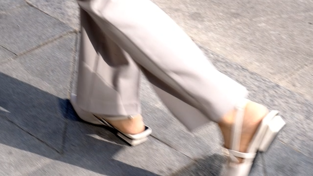 Working woman walking confidently down street