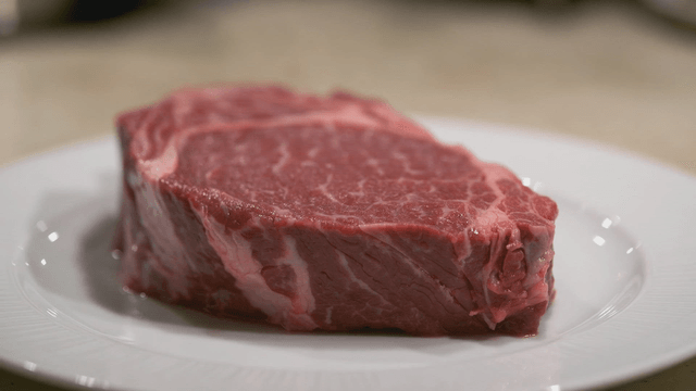 Marbled steak on white plate