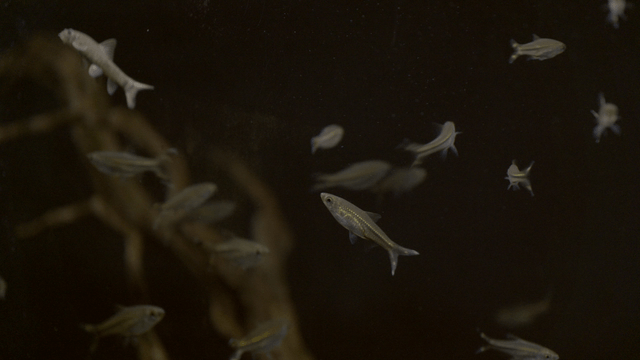 A small fish swimming in an aquarium