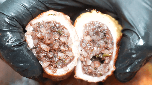 Cross section of crispy fried webfoot octopus