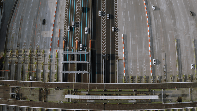 Highway tollgate with multiple lanes