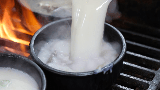 Beef and rice soup served in an earthen pot