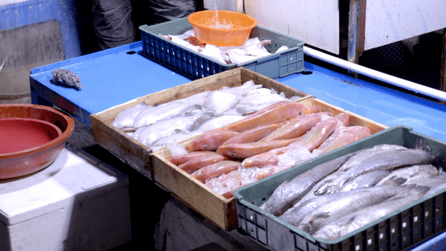 Marketplace Scene with Fresh Fish on Display