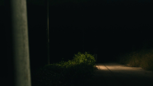 Person walking alone on a dark road