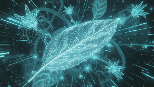 Leaf with digital circuit patterns