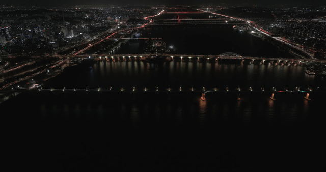 Aerial Shot of the Night View Around Yeouido