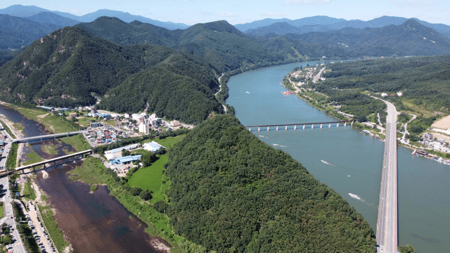 Aerial view of a lush river landscape