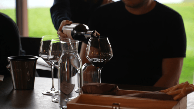 Red wine being poured into a glass