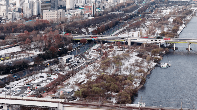Seoul cityscape with the Han River and a large bridge
