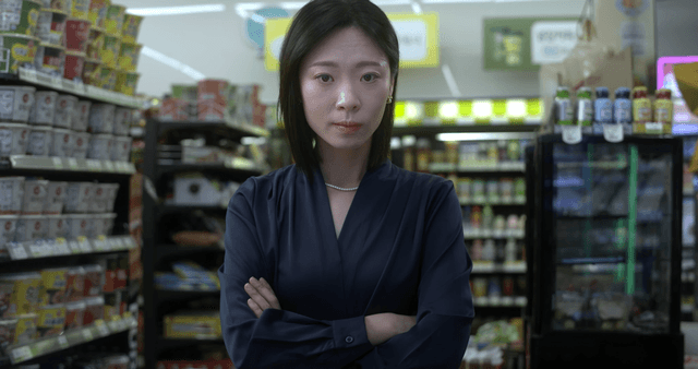 Convenience store clerk speaking in annoyed manner