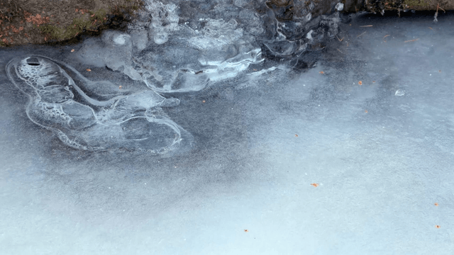 Frozen stream with intricate ice patterns