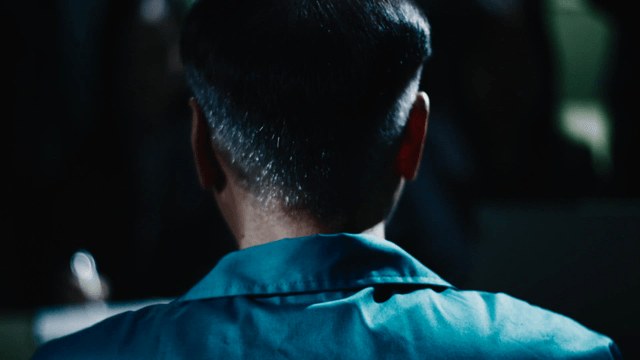 Prisoner giving statement in interrogation room and investigator questioning him.