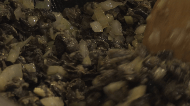 Cooking Scrambled Eggs and Green Onions in a Frying Pan