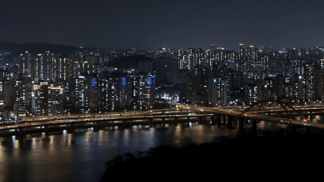 Aerial Shot of the Night View Around Yeouido