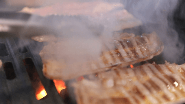 Grilling pork belly on a Korean BBQ grill