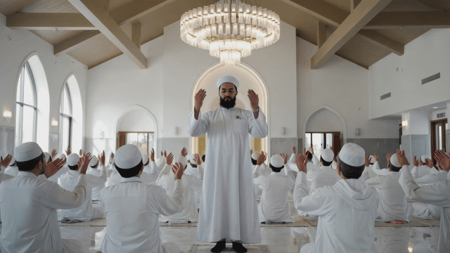 Men praying in a mosque with focus