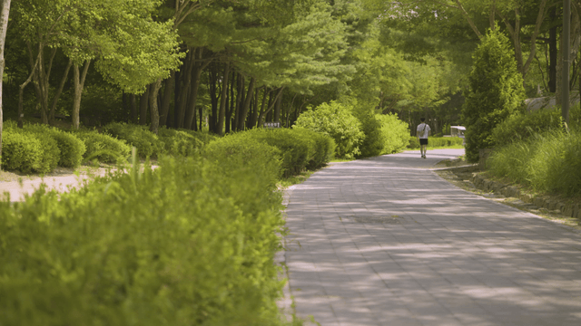 Afternoon walk through a lush green tree-lined path