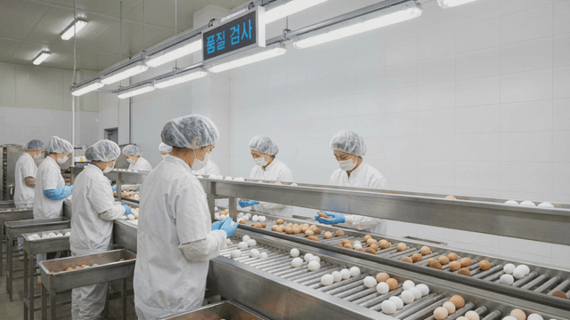Eggs rapidly processed on conveyor belt