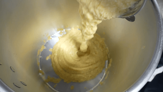 Bamboo shoots being boiled in a large nickel silver cauldron