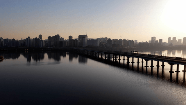 Sunlit Bridge Over Hangang River with Urban Skyline
