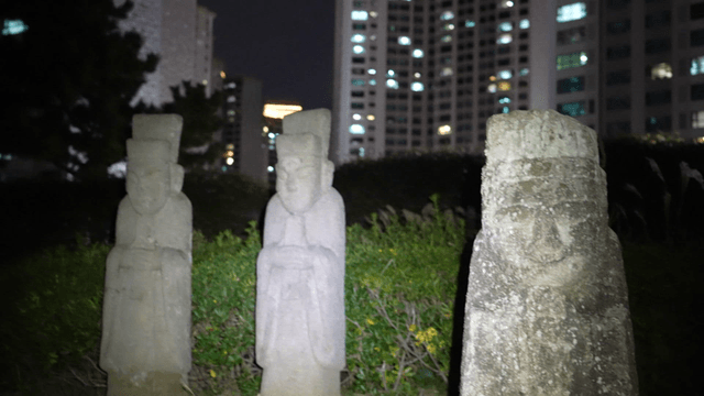Traditional stone statues at night