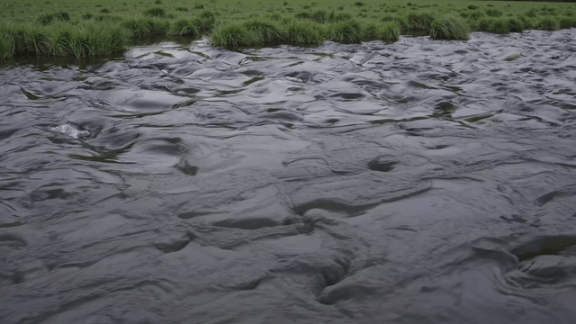 Serene river flowing through lush green fields