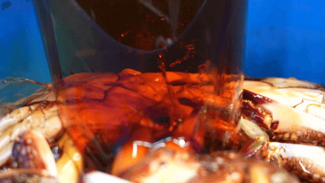 Soy sauce poured over marinated crab