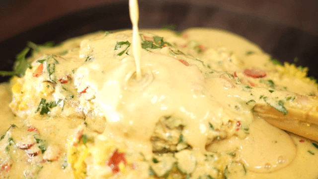 Creamy Mansaf with herbs, tongs for lifting lamb leg
