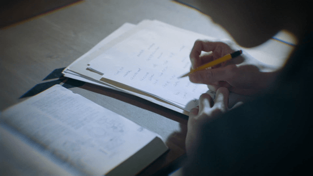 Person with pencil and book