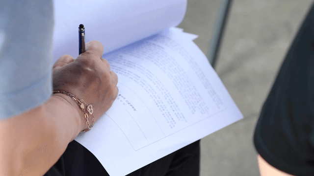 Hand signing a piece of paper