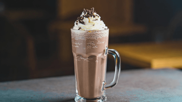 Chocolate milkshake topped with plenty of cream