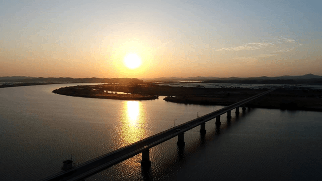 Sunset over a bridge and river