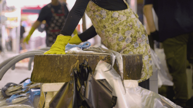 Preparing Fish at a Seafood Market