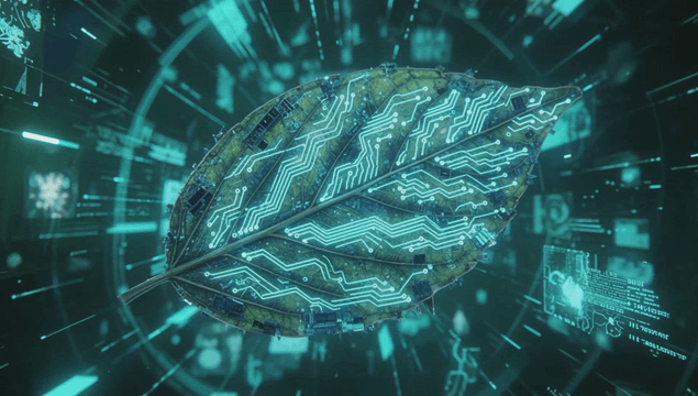 Leaf with digital circuit patterns