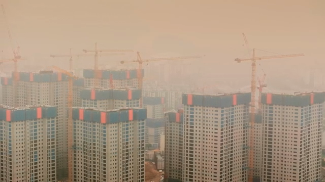 Skyline and Traffic in Urban Cityscape Seen through Haze Fog