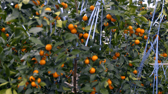 Tangerine trees laden with ripe fruit