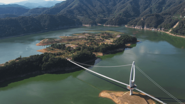 Suspension bridge over a scenic river