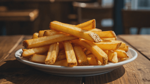 Crispy fries and fried boneless chicken in fusion cream sauce