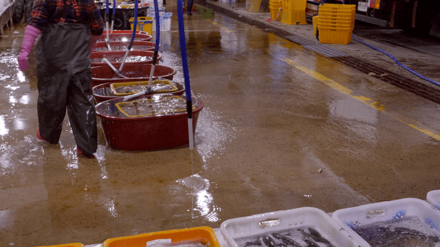 Fish Harvesting Bins and Tools in Use